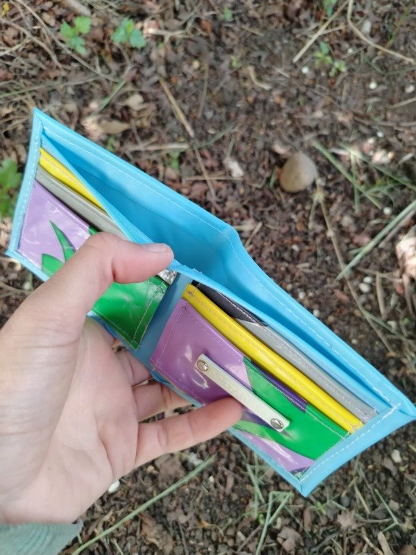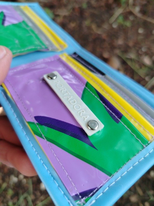 Es una billetera sencilla, delgada, ideal para meter en un bolsillito apretado, pero igual tiene capacidad para 6 tarjetas!