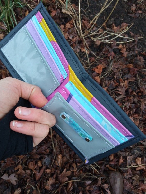 Es una billetera sencilla, delgada, ideal para meter en un bolsillito apretado, pero igual tiene capacidad para 6 tarjetas!
