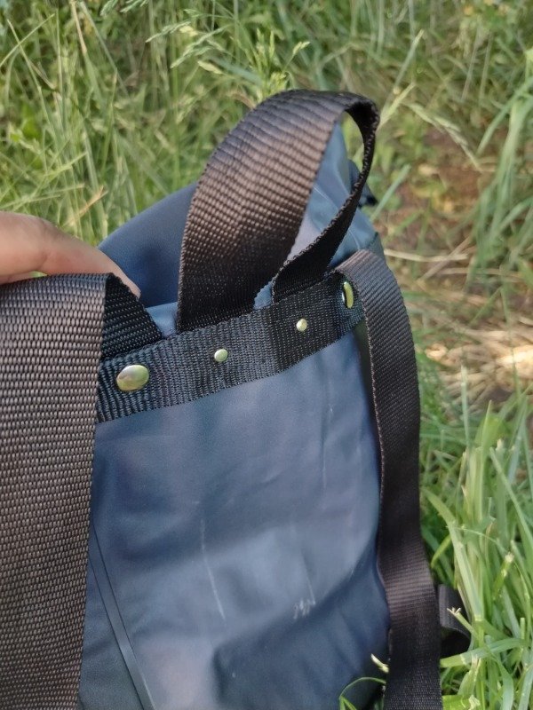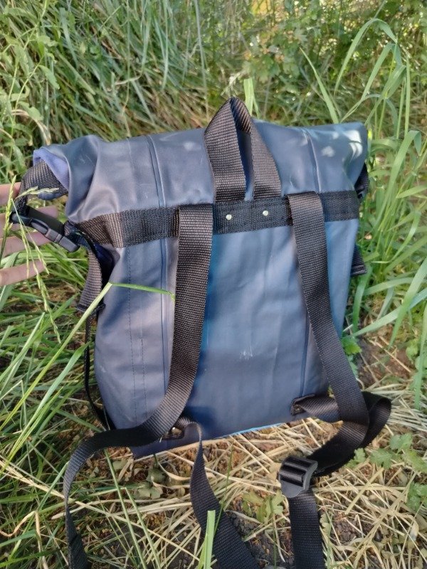 Es una mochila amplia y ajustable, con cierre similar a las bolsas estancas.