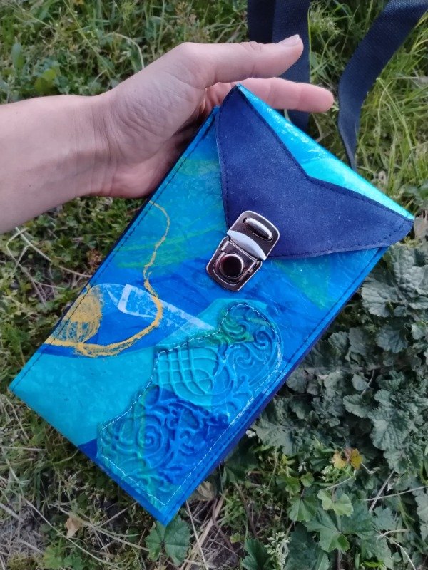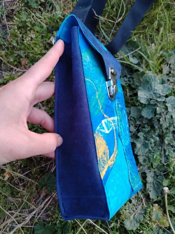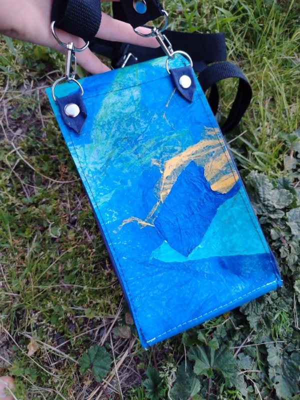 El frente y fondo están hechos con bolsas plásticas termofusionadas, con ésta nueva técnica para darle textura que me encanta🤤.